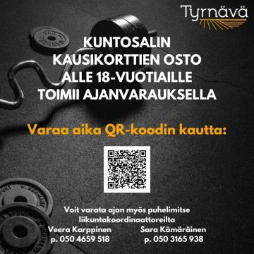 Kuntosalin kausikorttien osto alle 18-vuotiaille toimii ajanvarauksella. Voit varata ajan liikuntakoordinaattoreille kunnantalolle 📍 Qr-koodin...