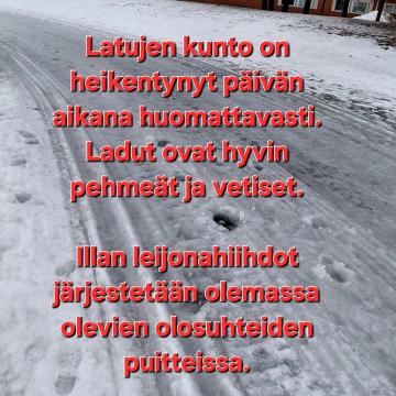 Valitettavasti lämmin sää on vaikuttanut latujen kuntoon huomattavasti ja ladut ovat erittäin huonossa kunnossa. Leijonahiihdot järjestetään...