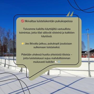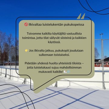 🚫 Ilkivaltaa luistelukentän pukukopeissa Toivomme kaikilta käyttäjiltä vastuullista toimintaa, jotta tilat säilyvät siisteinä ja kaikkien käytössä. 👉...