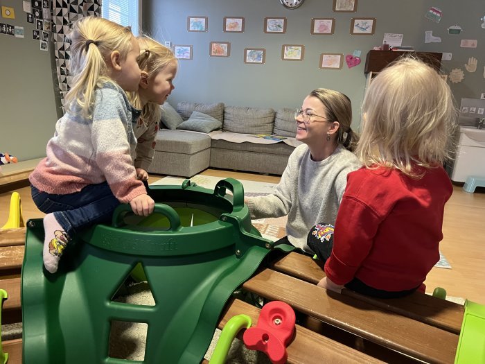 – Teknologiakasvatuksella ja monilukutaidolla on oma paikkansa tänä päivänä myös päiväkodissa, ja siihenkin keskittyviä päiviä meillä on. Paljon tärkeämpää on silti opettaa lapsia heittäytymään leikin maailmaan, jossa opitaan sosiaalisia ja muita tärkeitä taitoja elämää varten. Käymme lasten kanssa kirjastossa lainaamassa kirjoja, joita sitten luemme yhdessä.