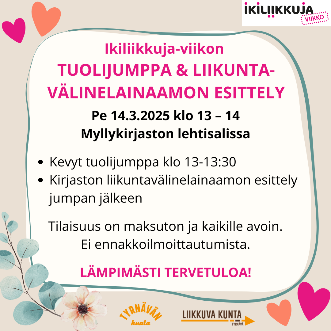 14.03.2025 13:00 - 14.03.2025 14:00 Ikiliikkuja-viikon tuolijumppa ja liikuntavälinelainaamon esittely