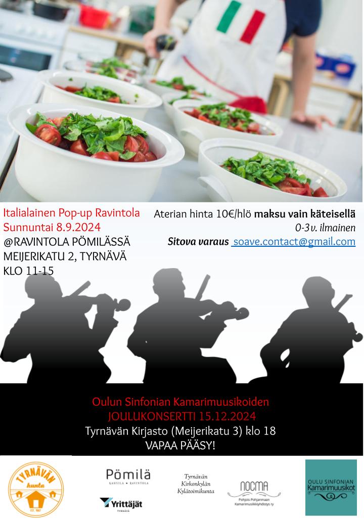 08.09.2024 11:00 - 08.09.2024 15:00 Italialainen Pop-Up Ravintola su 8.9.2024 klo 11-15 Ravintola Pömilässä