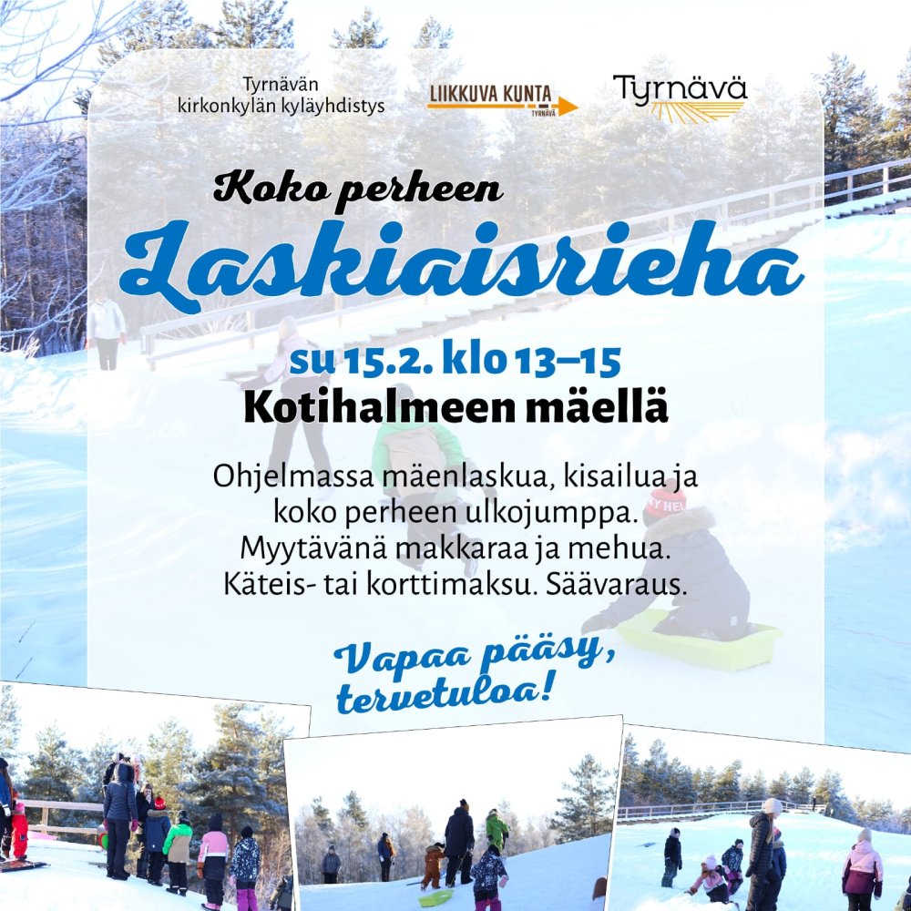 15.02.2026 13:00 - 15.02.2026 15:00 Koko perheen laskiaisrieha Koko perheen laskiaisrieha sunnuntaina 15.2.2026 klo 13–15 Kotihalmeen mäellä. Ohjelmassa mäenlaskua, kisailuja ja koko perheen ulkojumpaa. Myytävänä makkaraa ja mehua. Käteis- tai korttimaksu. Säävaraus.