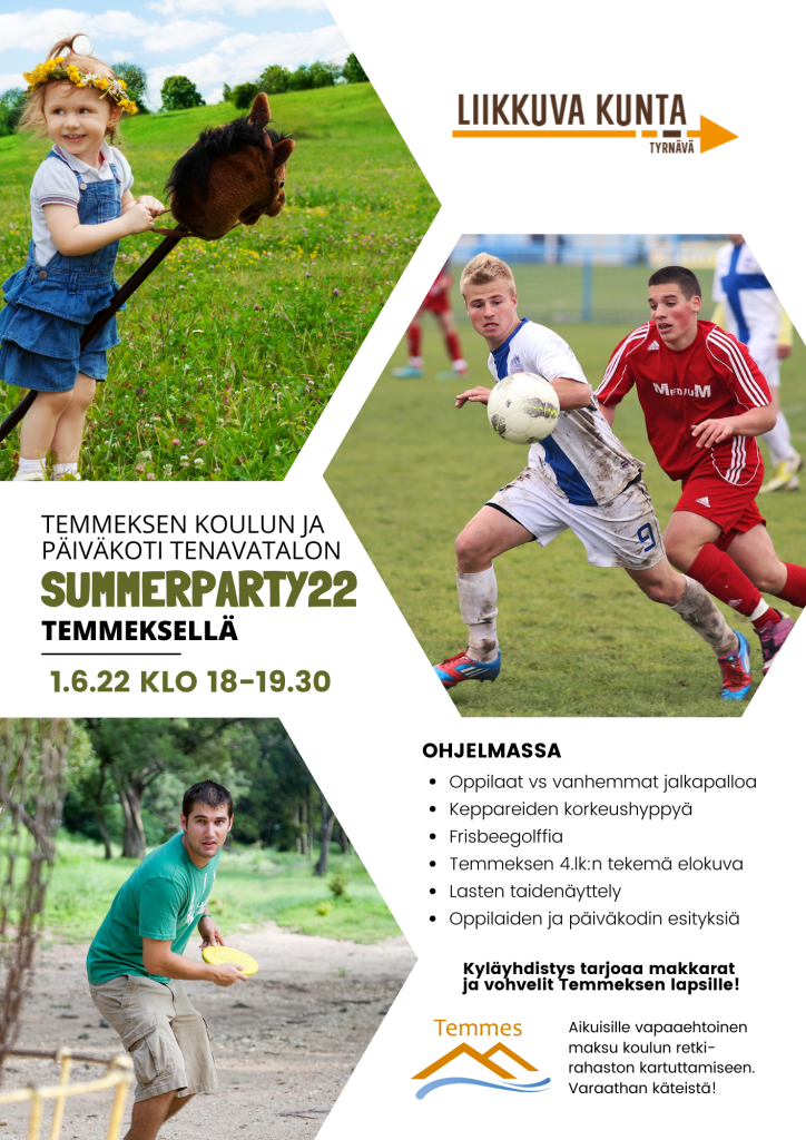 Tapahtumapaikka: Koulun ja päiväkodin summerparty22 Temmeksellä klo 18-19.30Koulutie 9