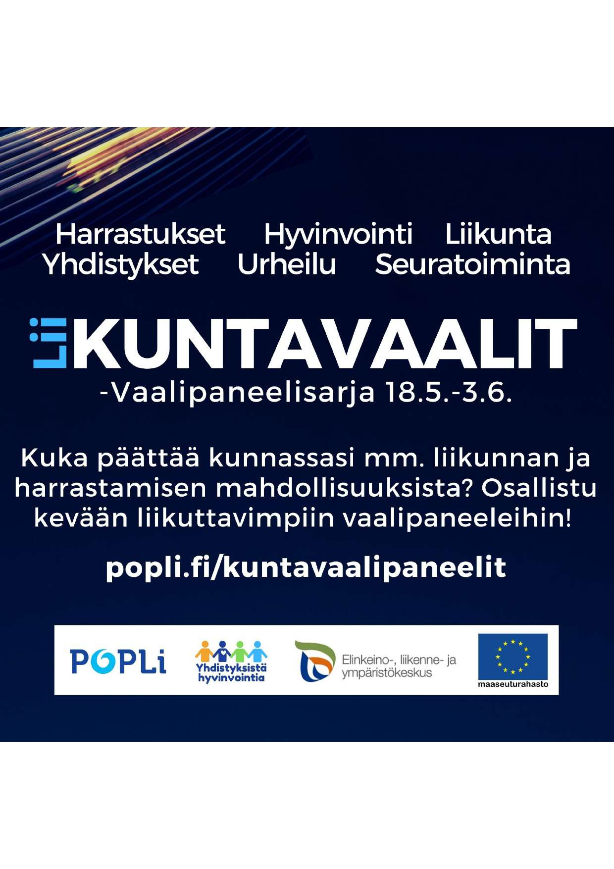Tapahtumapaikka: Kuntavaalit vaalipaneelisarjaTilaisuus toteutetaan etäyhteydellä (Teams) https://www.popli.fi/kuntavaalipaneelit/