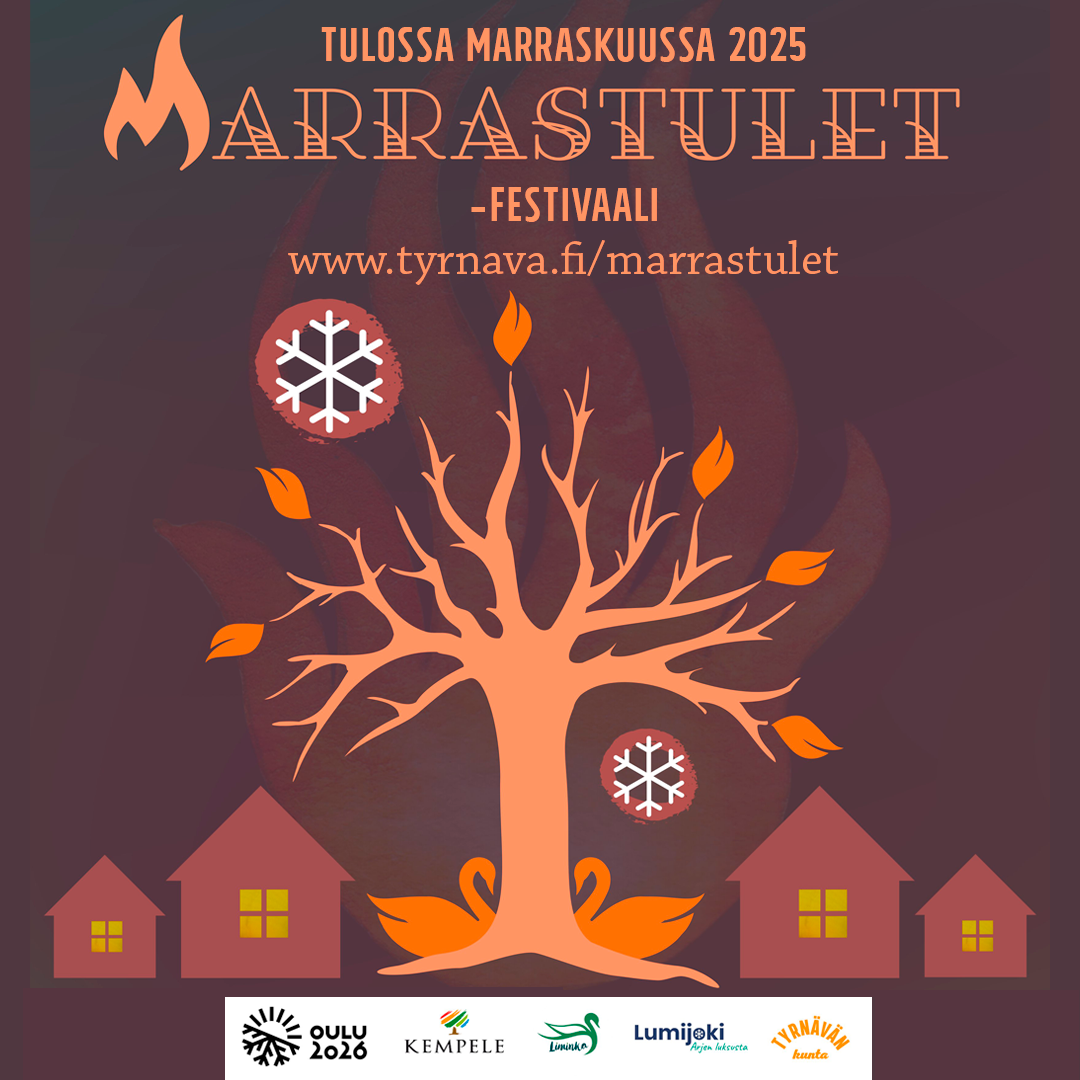 04.11.2025 17:59 - 07.11.2025 20:00 Marrastulet-festivaali Tyrnävällä jälleen marraskuussa 2025! Marrastulet-festivaali Tyrnävällä 4.–7.11.2025! Tänä vuonna Marrastulet-festivaalien ohjelmistossa huomioidaan etenkin lapsiyleisö ja ohjelmassa on perinteisen Halloween-discon lisäksi myös lasten nukketeatteriesitys ja syysaskartelu-työpaja. Keskiviikkona Oulun Tähtisirkus esiintyy Meijerialueella! Torstaina aikuiselle yleisölle luvassa kauhuelokuvaklassikko Nosferatu vuodelta 1922. Kaikkiin tapahtumiin on vapaa pääsy! Lämpimästi tervetuloa! Seuraa ilmoittelua tapahtumakohtaiselta sivulta tyrnava.fi/marrastulet. OHJELMA: Tiistaina 4.11. Klo 18 Nukketeatteri PikkuKulkuri esittää: Herra Kontiaisen aarrejahti. Myllykirjaston lehtisali. Keskiviikkona 5.11. Klo 18 Oulun Tähtisirkus esiintyy Meijerialueella! Kesto noin 10 min. Klo 17–19 Taiteilijatapaaminen: Saija Candelin. Tyrnävän kunnan näyttelytila. Torstaina 6.11. Klo 12–15 Syysaskartelu-työpaja. Myllykirjasto. Klo 18 Kauhuelokuvaklassikko Nosferatu (1922) Meijerikadun auditoriossa. Popcorn tarjoilu. Huom! Ikärajallinen tapahtuma. K-16! Perjantaina 7.11. Klo 18–20 Supersuosittu, jo perinteeksi muodostunut alakoululaisten Halloween-disco Myllykirjastolla.