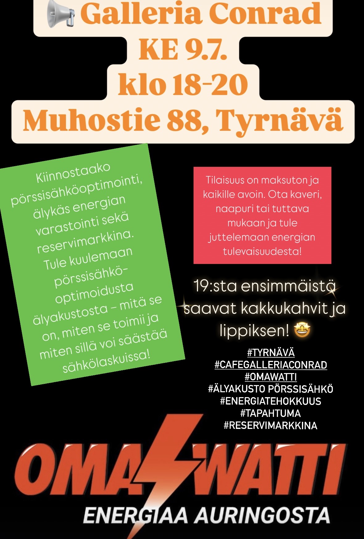 09.07.2025 18:00 - 09.07.2025 20:00 Omawatti-edustaja Galleria Conradissa Omawatti-edustaja Galleria Conradissa ke 9.7. klo 18–20. Vapaa pääsy!
