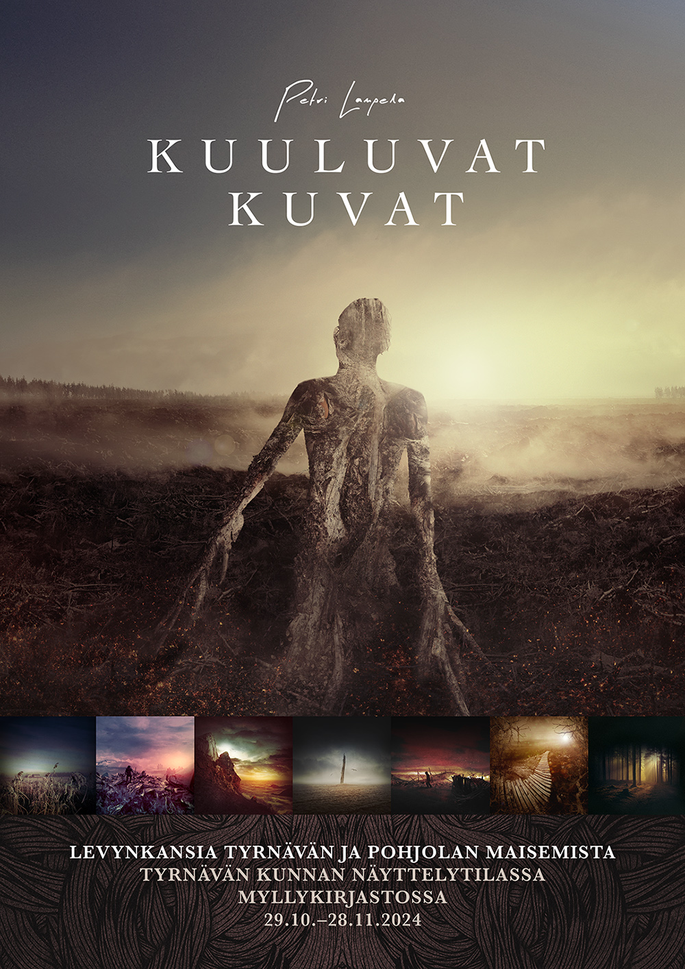 29.10.2024 18:00 - 28.11.2024 16:00 Petri Lampela: Kuuluvat kuvat - levynkansia Tyrnävän ja Pohjolan maisemista -näyttely 29.10.-28.11.2024 Petri Lampela:Kuuluvat kuvat - levynkansia Tyrnävän ja Pohjolan maisemista. Levynkansia esittelevä näyttely esillä 29.10.-28.11.2024 Tyrnävän kunnan näyttelytilassa Myllykirjastossa Graafinen suunnittelija Petri Lampela on vuosien aikana toteuttanut satoja levynkansia eri artisteille ja näyttelyssä on esillä upeaa levyjen kansikuvataidetta. Lampela tekee kuvitustöitä sekä käsin piirtämällä että valokuvia ja eri tekniikoita yhdistelemällä. Avajaisia vietetään Marrastulet-festivaalien yhteydessä ke 30.10. klo 17. Taiteilija tavattavissa. Tervetuloa! Voit tutustua Petrin taiteeseen nettisivuilla: www.petrilampela.com