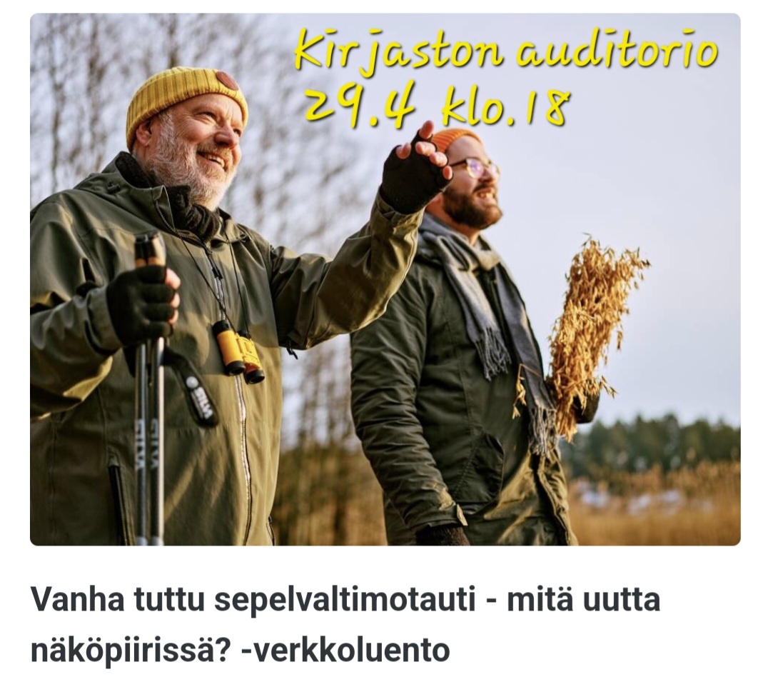 29.04.2025 18:00 - 29.04.2025 19:30 Sydänliiton verkkoluento sepelvaltimotaudista Tyrnävän Sydänyhdistys järjestää 29.4. klo 18 tilaisuuden kirjaston auditoriossa, johon voit tulla luentoa kuuntelemaan. Luennon ohjelma: Mistä sepelvaltimotaudissa on kyse, miten sairaus kehittyy ja mitkä ovat sen seuraukset? Mitkä ovat sepelvaltimotaudin riskitekijöitä? Miten sepelvaltimotautia tutkitaan? Selostus uusimmista tutkimusmenetelmistä ja suuntauksesta tulevaisuudessa. Sepelvaltimotaudin hoito tänään ja tulevaisuudessa. Miten hoidon onnistumista nykyisin seurataan, vai seurataanko ollenkaan? Onko mitään uusia hoitoja näköpiirissä? Verkkoluennolla aiheesta puhumassa Sydänliiton ylilääkäri, kardiologi Anna-Mari Hekkala.