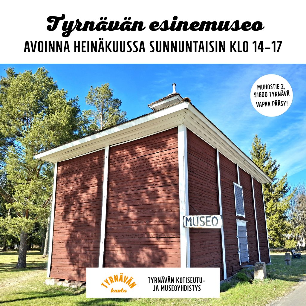 27.07.2025 14:00 - 27.07.2025 17:00 Tyrnävän esinemuseo avoinna sunnuntaina 27.7.2025 klo 14–17 Tyrnävän esinemuseo on avoinna heinäkuussa sunnuntaisin klo 14–17. Muhostie 2, 91800 Tyrnävä. Vapaa pääsy, tervetuloa!