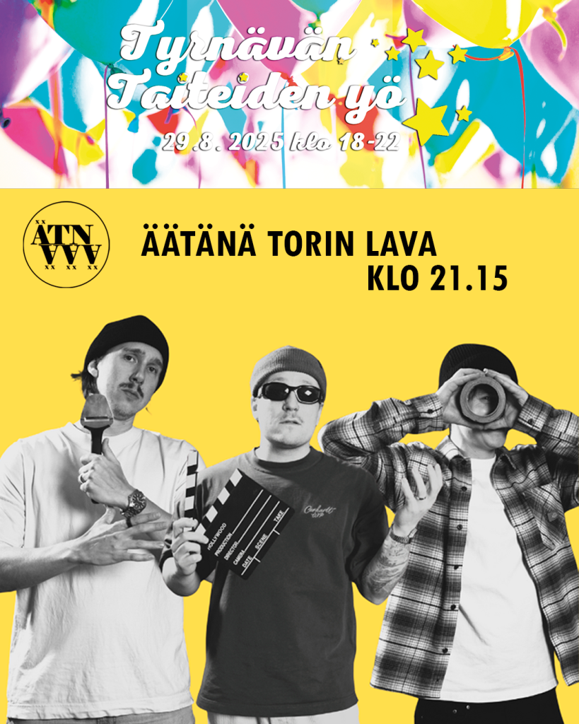 29.08.2025 21:15 - 29.08.2025 22:00 Tyrnävän Taiteiden yö pe 29.8.2025 klo 18-22: ÄÄTÄNÄ Torin lava klo 21.15 Tyrnävän Taiteiden yö pe 29.8.2025 klo 18-22: ÄÄTÄNÄ Torin lava klo 21.15 ÄÄTÄNÄ on Suomen tai ainakin Oulun kovin bändi, jonka nimi alkaa kaksoisvokaalilla. Itseironisen leija suhtautuminen musiikkiin saa yhtyeen paukuttelemaan henkseleitä kieli poskessa, mutta tyhjäntoimittamisen lisäksi lyriikoissa tuodaan esille vakavahenkisempiä aiheita ja kokemuksia. Nimi heijastaa vahvaa identiteettiä ja halua erottua suomalaisella rap-kentällä. IG: ÄÄTÄNÄ