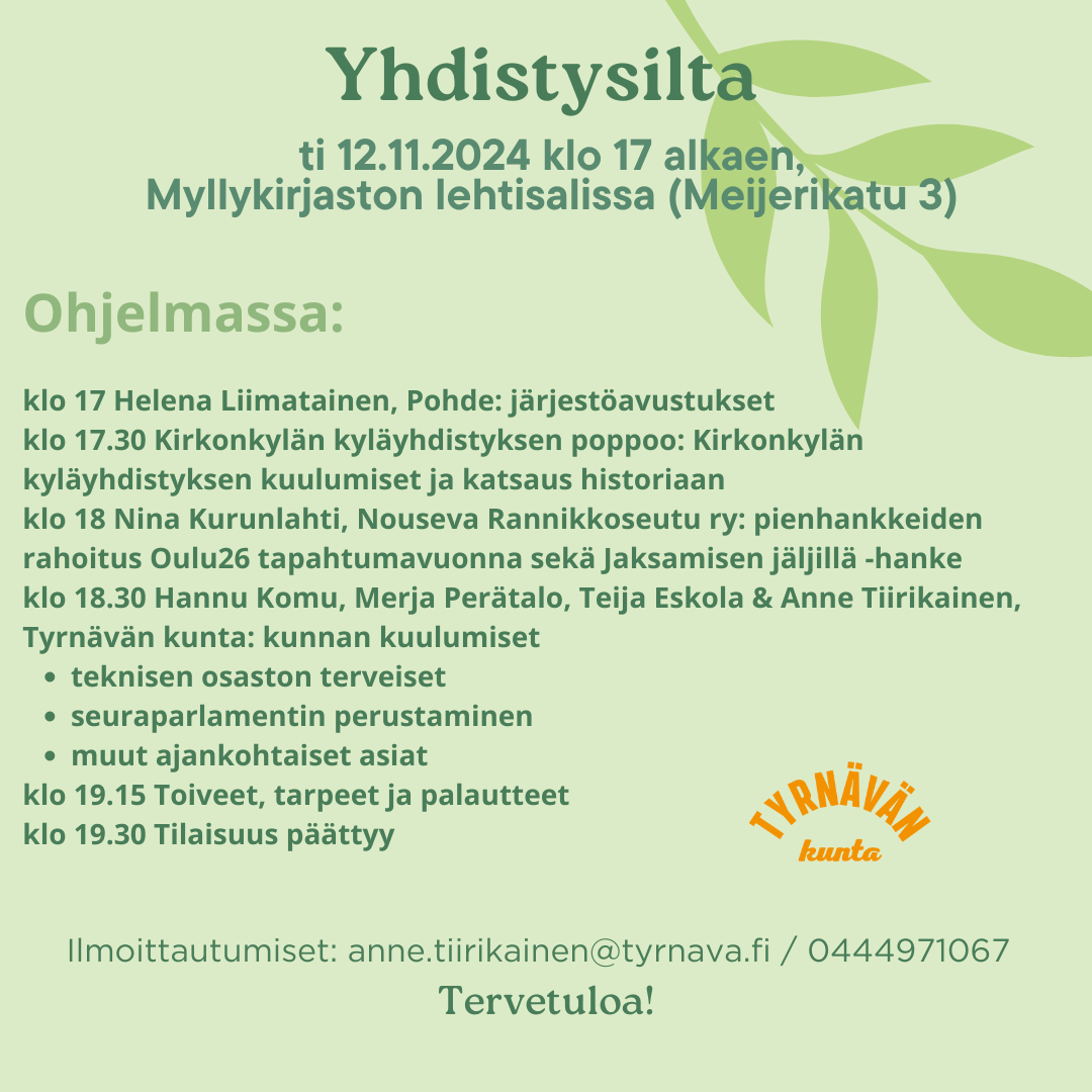 12.11.2024 17:00 - 12.11.2024 19:30 Yhdistysilta ti 12.11.2024 klo 17 alkaen Myllykirjaston lehtisalissa