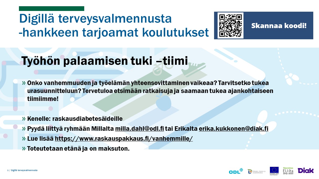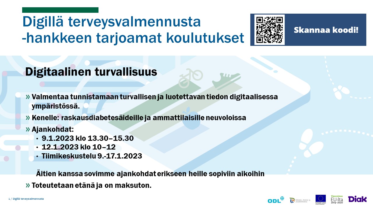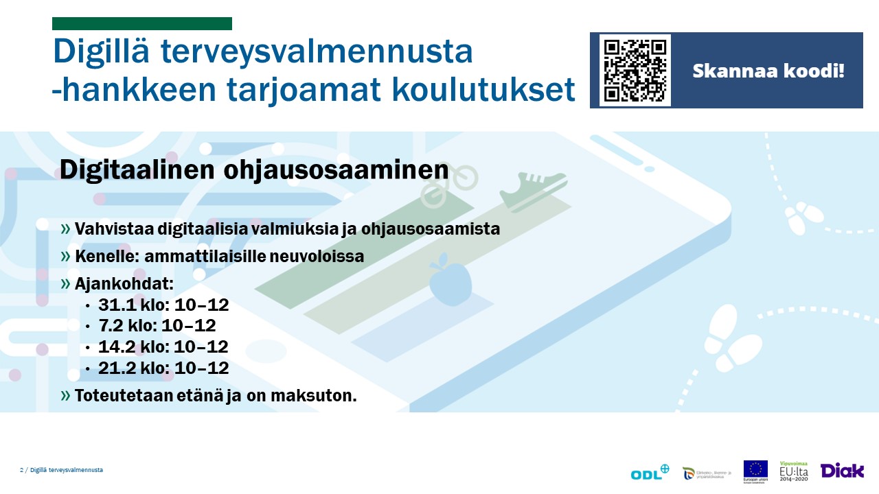 Digillä terveysvalmennusta -hankkeen tarjoamat koulutukset