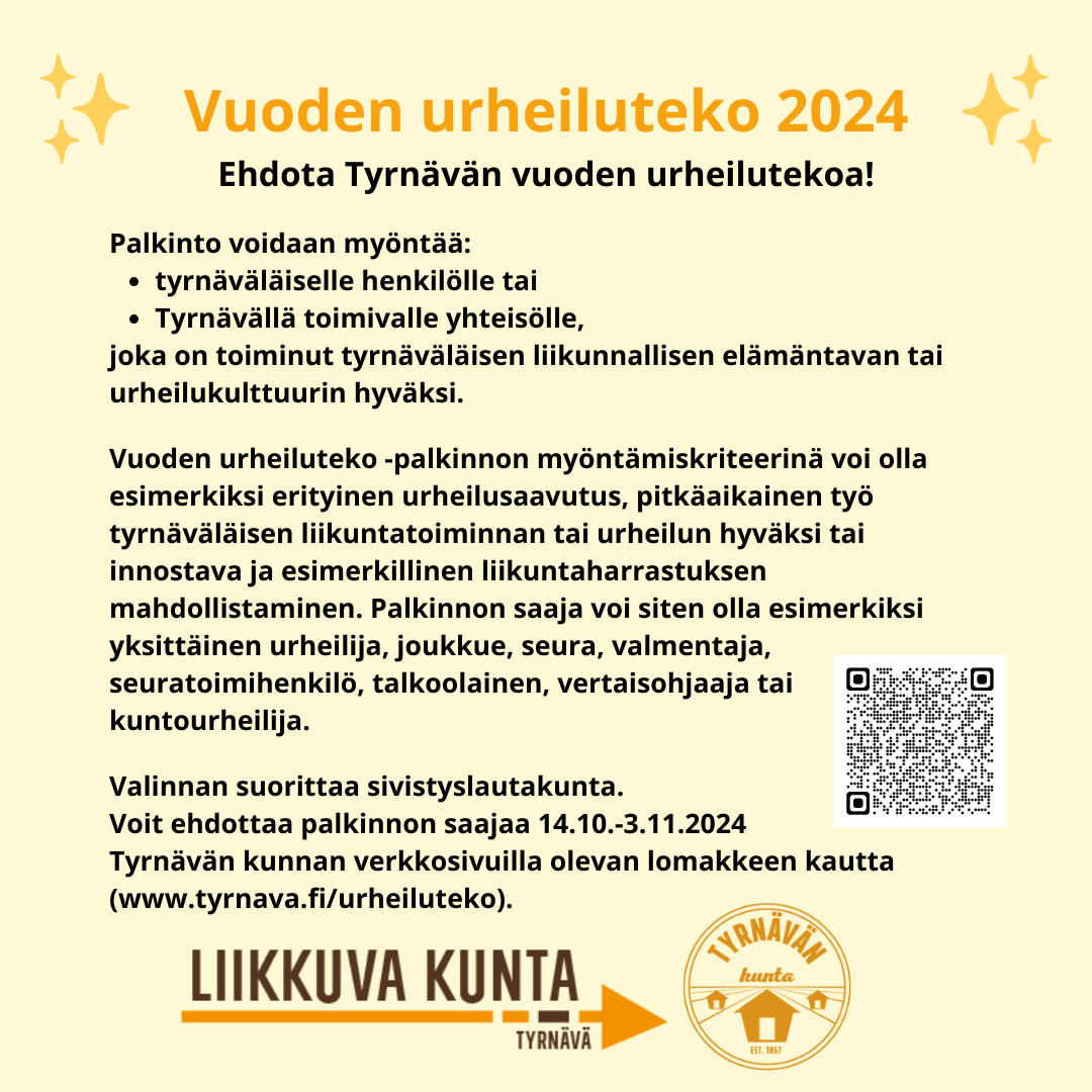 Ehdota Tyrnävän Vuoden urheilutekoa 2024!