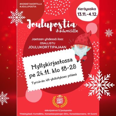 #kosketakortilla #joulupostiaikäihmisille #sytytävalopimeyteen #joulukortti #jouluposti #tyrnävänkunta #MukavammanArjenKotikunta #meidäntyrnävä #kulttuurityrnävä #tyrnävänkirjasto #myllykirjasto #4htyrnava #siskotjasimot