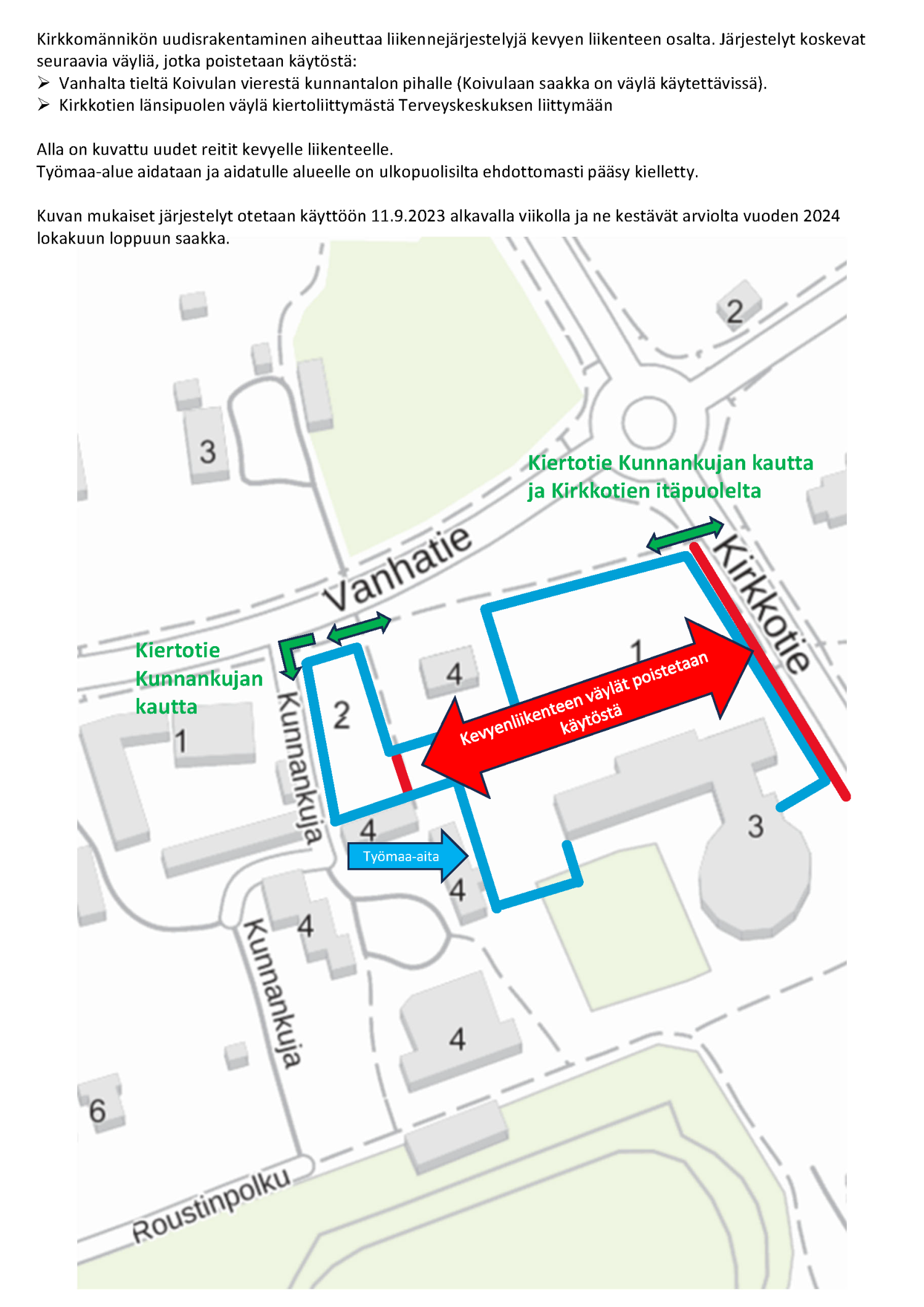 Kevyen liikenteen uudelleen järjestelyjä Kunnantalon alueella