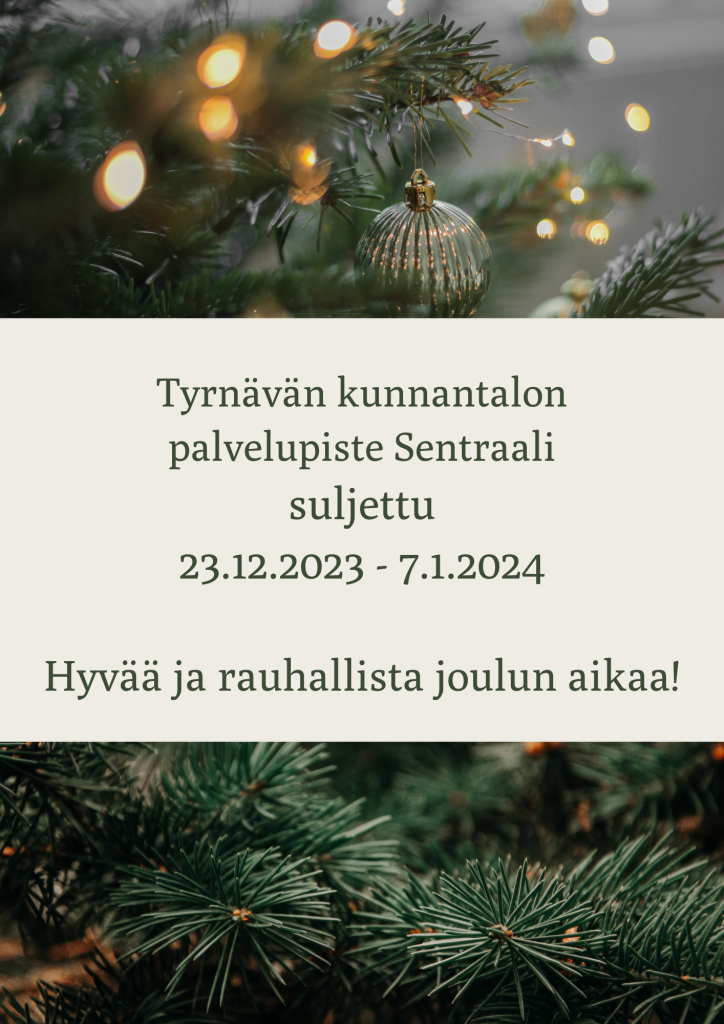 Kunnantalon palvelupiste Sentraali suljettu 23.12.2023 - 7.1.2024