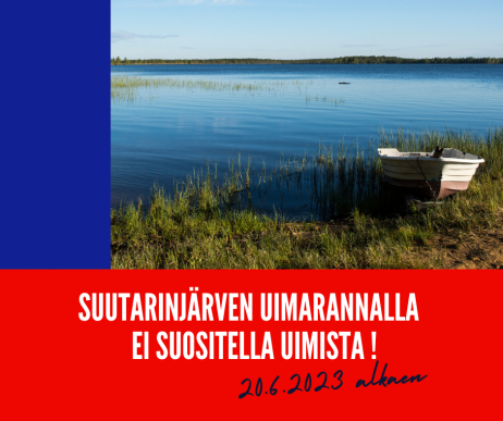 Julkaistu 22.06.2023 Suutarinjärvi on uimakiellossa Vedestä on löytynyt haitallinen määrä bakteereja. Oulun seudun ympäristötoimi on 22.6.2023 asettanut uimakiellon Tyrnävän Suutarinjärven uimapaikalle. Kielto on voimassa toistaiseksi. Suutarinjärven uimapaikalta 21.6.2023 otetussa uusintanäytteessä todettiin suolistoperäisiä enterokokkibakteereja yli toimenpiderajan. Terveyshaittojen ehkäisemiseksi on katsottu välttämättömäksi kieltää uiminen uimarannalla. Suutarinjärven uimapaikan vedenlaatua seurataan tihennetysti. Seuraavat uimavesinäytteet otetaan maanantaina ja tiistaina 26.-27.6.2023. Tuloksista tiedotetaan seuraavan kerran keskiviikkona 28.6. Kielto voidaan purkaa, kun kahden peräkkäisen näytteen tulokset ovat hyviä. Lisätietoa Annika Hyttinen, p. 044 497 1050, Tyrnävän kunta Uimarantavesitiedote 2 / 2023 testausseloste Suutarinjärvi 22.6.2022
